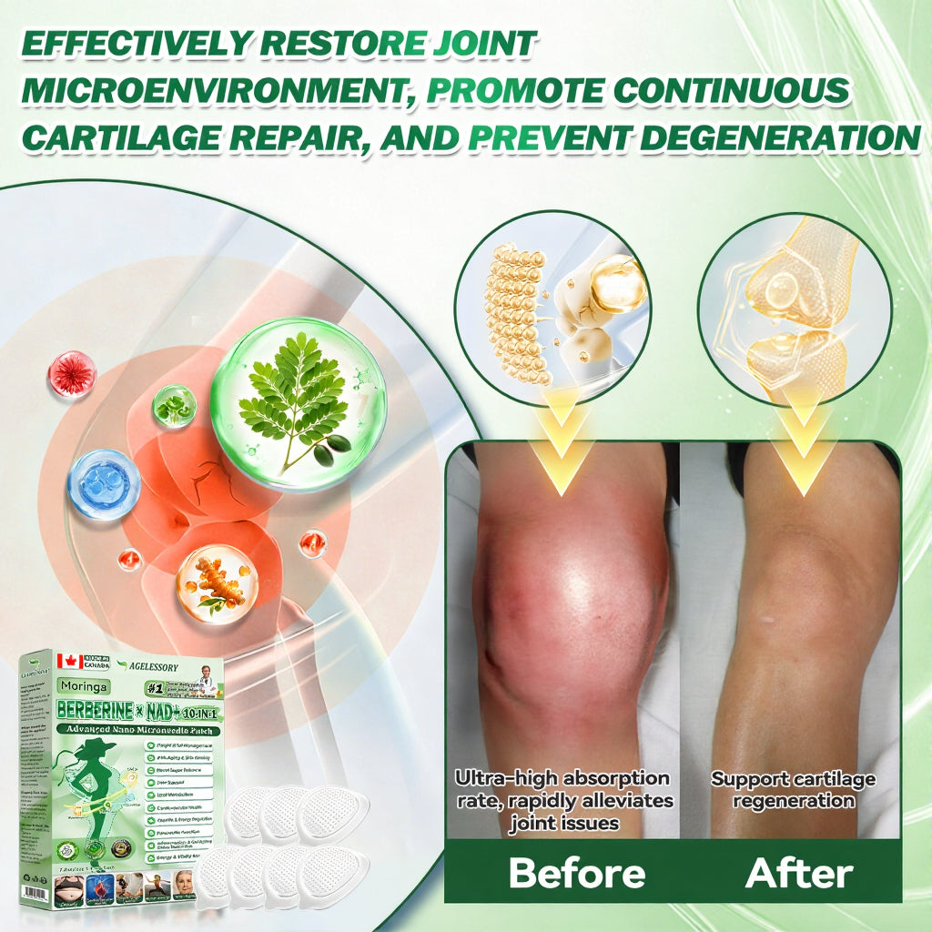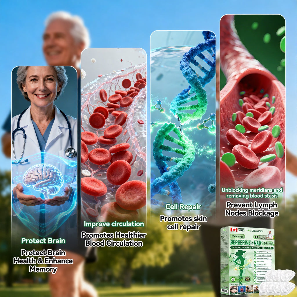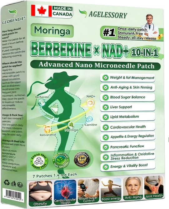 AGELESSORY®𝑴𝒐𝒓𝒊𝒏𝒈𝗮 · 𝗕𝗲𝗿𝗯𝗲𝗿𝙞𝙣𝙚 × 𝙉𝘼𝐃+ 𝟏𝟎-𝐢𝐧-𝟏 𝗔𝗱𝘃𝗮𝗻𝗰𝙚𝙙 𝙉𝙖𝙣𝙤 𝙈𝙞𝙘𝙧𝙤𝙣𝙚𝙚𝐝𝐥𝐞 𝐏𝐚𝐭𝙘𝙝 was developed through more than 20 years of research by a multidisciplinary team of over 30 experts. Each patch incorporates an ultra-fine microneedle architecture measuring approximately one-seventh the thickness of a human hair, designed to ensure a smooth and virtually painless application. The formulation contains highly concentrated natural bioactive compounds, up to 20-fold higher than conventional market levels, including Moringa and Berberine, which act synergistically to support healthy glycemic responses, appetite regulation, and lipid metabolism, thereby promoting gradual and sustainable weight management. Enriched with NAD+,the patch further supports skin firmness and structural resilience during body-weight fluctuations, helping maintain a lean appearance without compromising comfort or aesthetics. Additional high-efficacy components contribute to the support of immune function, digestive health, gut balance, women’s health, daily energy levels, and fatigue reduction, collectively promoting a more youthful and resilient physiological state from within. This product meets the quality standards of the Canadian Health Discussion Organization and requires no injections. Based on scientific principles, it provides a safe and comprehensive approach to effectively control weight and promote long-term metabolic health, designed to work in harmony with the body rather than against it.