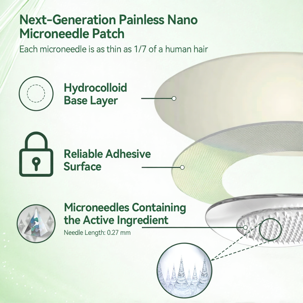 ✅ Safe and Effective: Our advanced nano microneedle patches are made with natural ingredients and scientifically validated formulas, and are produced in factories that meet Canadian health discussion organization standards to ensure quality and safety.
